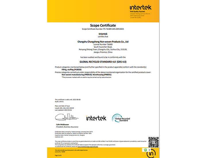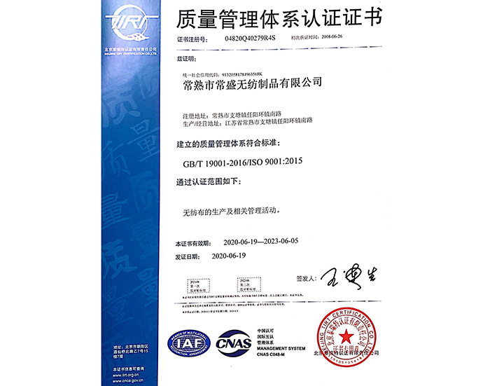 常熟市常盛無紡制品有限公司座落在中國無紡名鎮(zhèn)——任陽鎮(zhèn),擁有生產(chǎn)、倉儲車間11200平方米,通過ISO9001、ISO45001、ISO14001體系認證。公司具有15年的無紡產(chǎn)品生產(chǎn)經(jīng)驗,專注于紡絲棉的生產(chǎn)。產(chǎn)品廣泛采用GRS認證的環(huán)保材料,通過bluesign藍標認證,充分體現(xiàn)環(huán)保可持續(xù)理念和價值觀,與世界500強企業(yè)保持長期良好的合作。